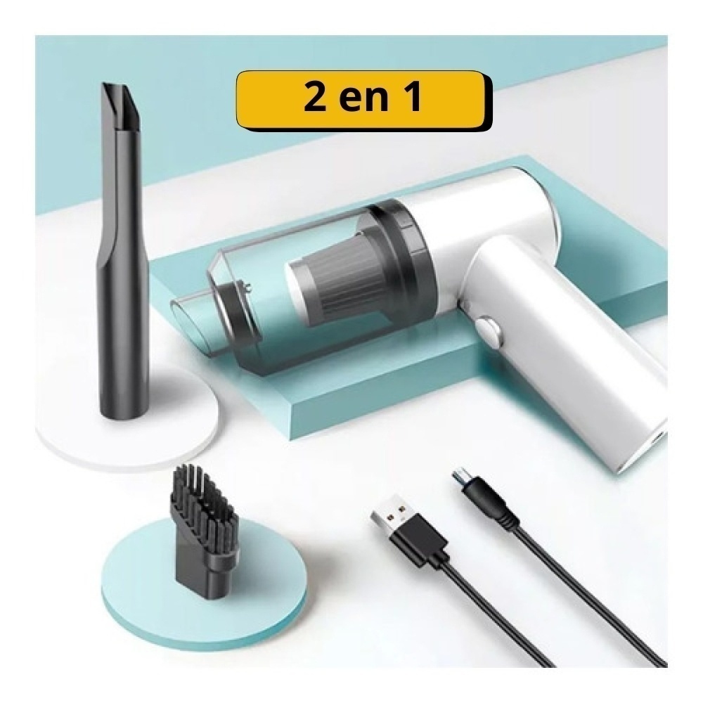 Función de aspiración y soplado, un lado para aspirar y el otro lado elimina el polvo.Succión portátil y potente: diseño liviano e inalámbrico con motor de potencia de 42 W y proporciona una succión potente de 4500 pa, lo suficientemente fuerte como para absorber los tipos más comunes de escombros, pelos, etc.2 accesorios de boquilla: incluye boquilla plana y boquilla de cepillo para limpiar teclados, computadoras, equipos electrónicos, escritorios de oficina, automóviles, pelos de mascotas, etc.Motor Silencioso y Potente: Aspira incluso las partículas más pequeñas sin generar ruido excesivo.Compacta y Ligera: Con dimensiones reducidas, es cómoda de manejar y fácil de almacenar.Filtro Lavable: Filtro reutilizable fácil de limpiar, garantizando un uso prolongado y eficiente.Especificaciones:Carga: USBPotencia nominal: 30WVoltaje nominal : 3.7VTamaño del producto : 16,4 x 6 x 14,7 cm